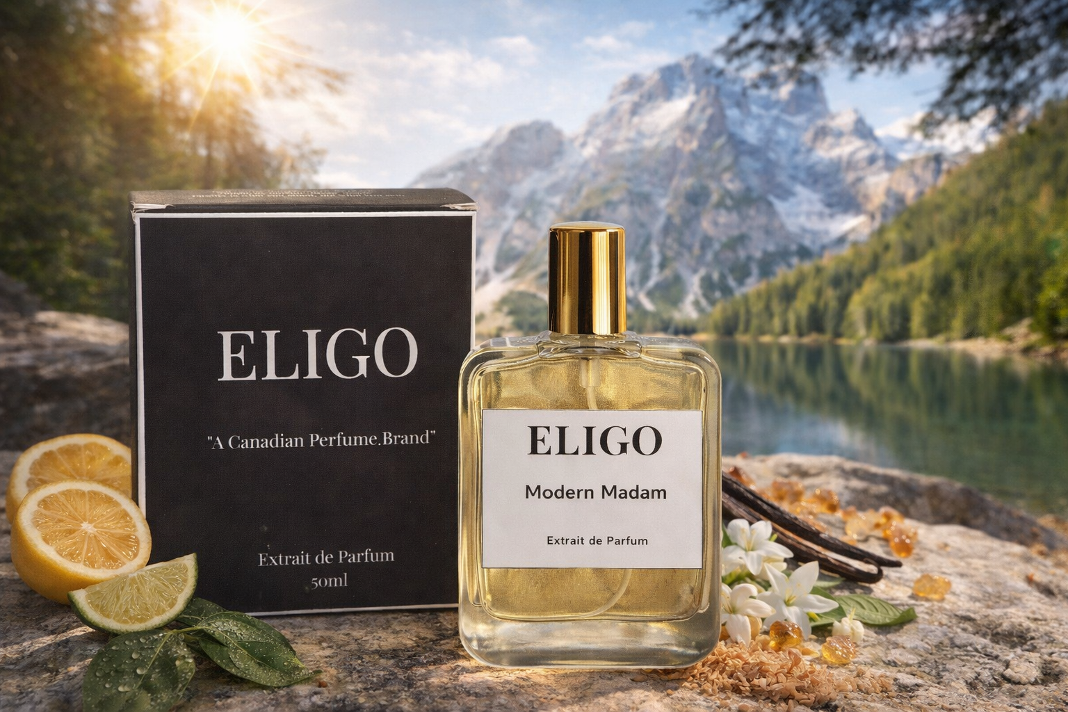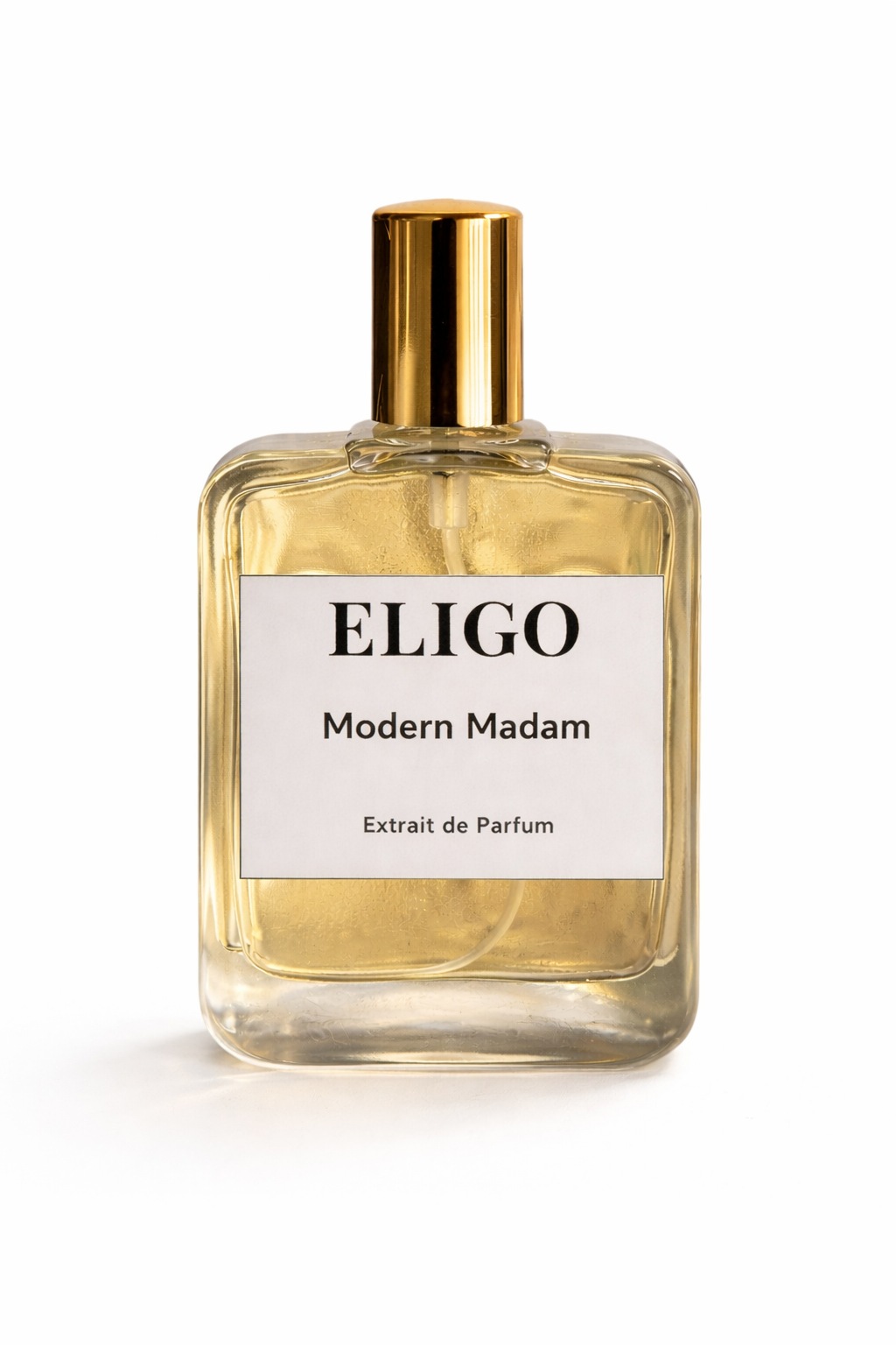 Inspired by the timeless elegance of Coco Mademoiselle, Modern Madam is crafted in Canada for the woman who embodies confidence, grace, and effortless sophistication. It opens with a sparkling burst of fresh citrus, where bright orange and bergamot set a luminous, uplifting tone. The heart blooms into a refined floral bouquet of rose and jasmine, balancing softness with strength. As it settles, warm patchouli, creamy vanilla, and white musk create a sensual, modern trail that feels polished, radiant, and undeniably feminine.
